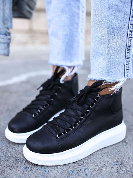 Czarne Sznurowane Botki z Imitacji Skóry na Podeszwie z Platformą i Żłobieniami Zaran
