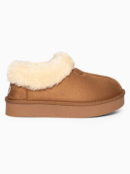 – zapięcie: bez- noski: zaokrąglone- zapiętki: wzmocnione- detale: obszycie ze sztucznego futerka- dookoła gumowanie- podeszwa: antypoślizgowa