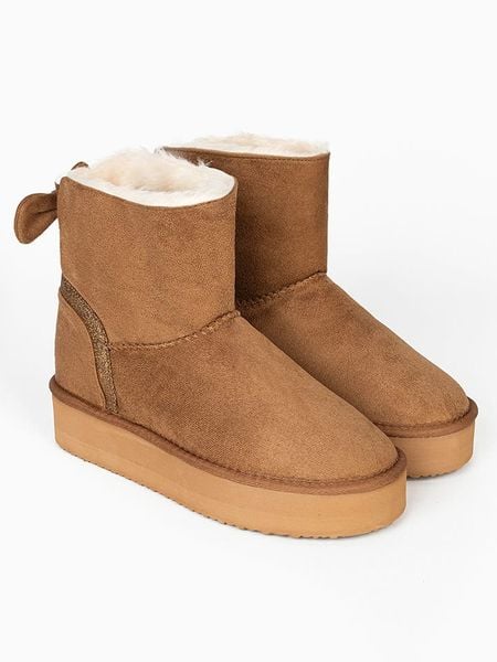 – zapięcie: bez- noski: okrągłe- wyściółka: ogrzewający materiał tekstylny- forma obcasa: platforma- detale: ozdobna kokarda- podeszwa: lekko profilowana- kolor producenta: chestnut