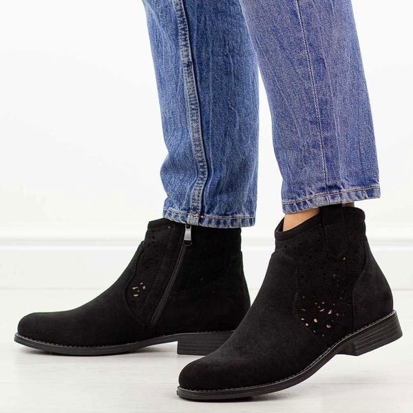 Czarne zamszowe ażurowe botki damskie S.Barski 8019