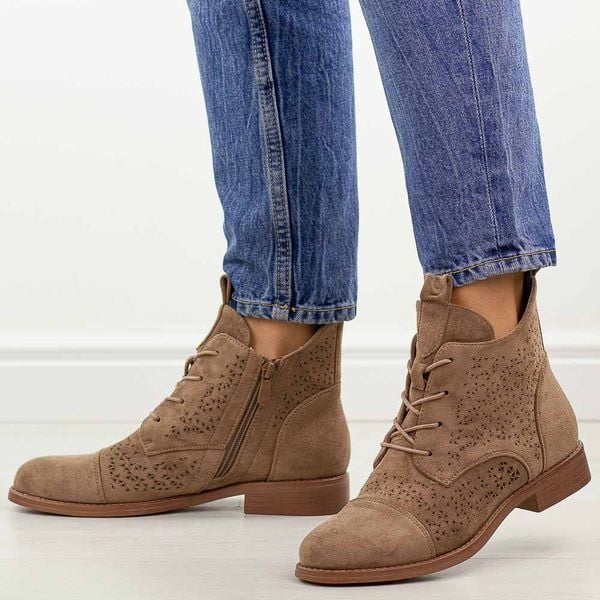Coffee zamszowe ażurowe botki damskie S.Barski 8009