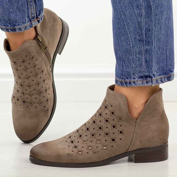 Beżowe zamszowe ażurowe botki damskie Vinceza 58626