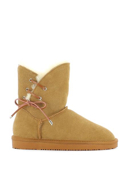 – skóra welurowa- zapięcie: bez- noski: zaokrąglone – zapiętki: wzmocnione – detale: ozdobne wiązanie- wyściółka: ogrzewająca skóra i materiał tekstylny – skórzana wkładka: tak- podeszwa: antypoślizgowa