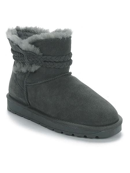 – skóra welurowa- zapięcie: bez- noski: zaokrąglone- wyściółka: ogrzewająca skóra owcza i materiał tekstylny- detale: ozdobny pasek- skórzana wkładka: tak- podeszwa: antypoślizgowa