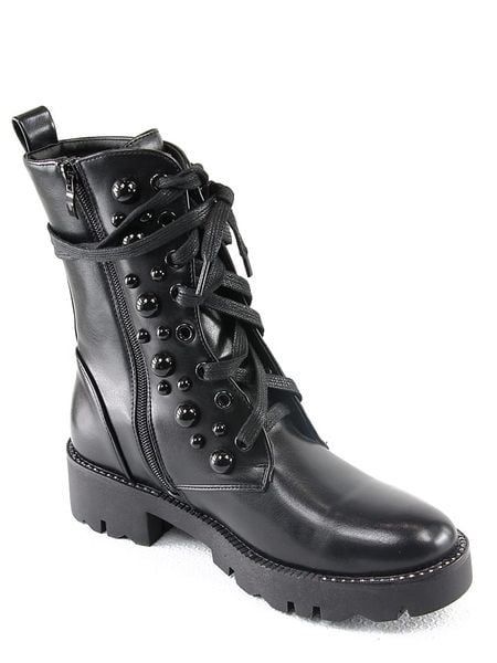 – materiał wierzchni ze skóry ekologicznej- zapięcie: sznurowanie z bocznym suwakiem- noski: zaokrąglone- zapiętki: wzmocnione- detale: ozdobne nity- forma obcasa: blokowy- praktyczna szlufka ułatwiająca zakładanie- podeszwa: antypoślizgowa
