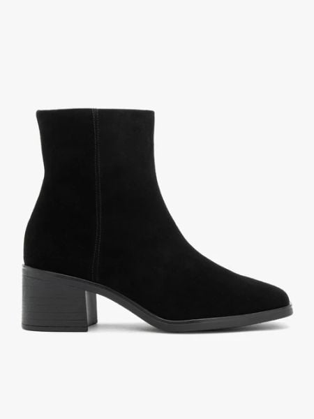 Czarne eleganckie botki ze skóry welurowej
