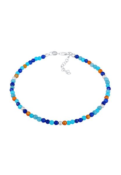 Elli Damska bransoletka na kostkę Kulki Boho z Agatem Niebieskim w srebrze próby 925 Sterling Silver Bransoletki na nogę 1 ct Damski