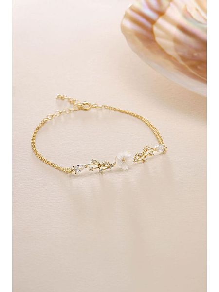 – materiał: srebro Sterling próby 925- powłoka: złoto- zapięcie: federing- rodzaj kamienia: cyrkonia- kolor kamienia: bezbarwny- element ozdobny: kwiat- regulacja długości: takWskazówka: Zdjęcie produktu w powiększeniu.