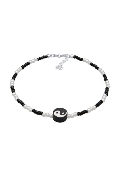 Elli Damska bransoletka na kostkę Yin Yang ze szklanymi koralikami ze srebra próby 925 Sterling Silver Bransoletki na nogę 1 ct Damski
