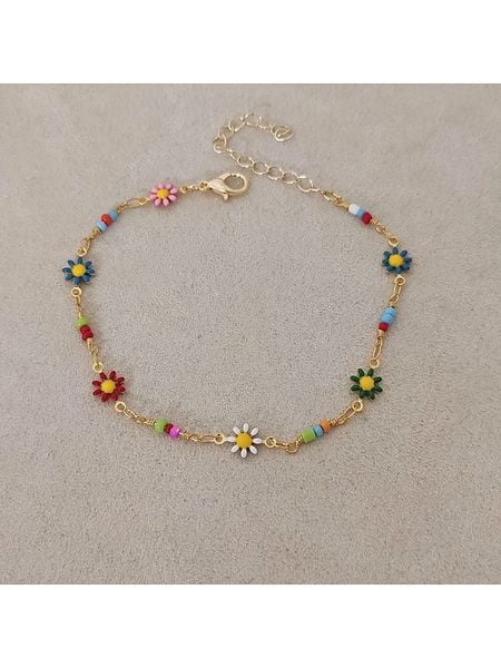 – materiał: mosiądz- powłoka: złoto- typ łańcuszka: ankier- zapięcie: karabińczyk- element ozdobny: kwiatWskazówka: Zdjęcie produktu w powiększeniu.