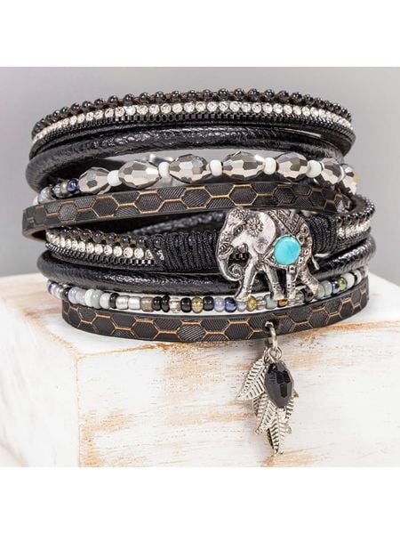 – materiał 1: skóra syntetyczna- materiał 2: rod- zapięcie: magnetyczne- rodzaj kamienia 1: kryształ- rodzaj kamienia 2: ozdobne kamyczki- kolor kamienia: bezbarwny, turkusowy- rodzaj perły: syntetyczna perła ozdobna- kolor pereł: różnokolorowe- opakowanie: woreczek biżuteryjnyWskazówka: Zdjęcie produktu w powiększeniu.