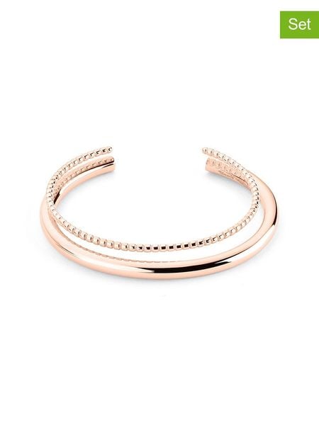 W zestawie:- 2 bransoletki- materiał: stal szlachetna- powłoka: IP-roségold- zapięcie: brak, rozciągliwaWskazówka: Zdjęcie produktu w powiększeniu.