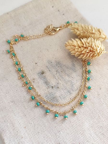 – materiał: mosiądz- powłoka: 14K złoto- typ łańcuszka: ankier- zapięcie: karabińczyk- rodzaj kamienia: kamień ozdobny- kolor kamienia: zielony- regulacja długości: takWskazówka: Zdjęcie produktu w powiększeniu.