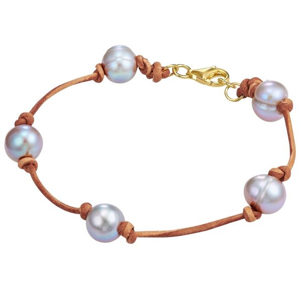 Valero Pearls Skórzana bransoletka srebro wysokiej próby Perła hodowlana słodkowodna żółte złoto Bransoletki 1 ct Damski