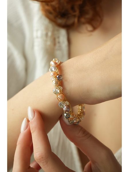 Pierres delicates Bransoletka w kolorze jasnoróżowym z perłami rozmiar: onesize