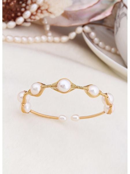 – materiał: mosiądz- powłoka: złoto- zapięcie: brak, rozciągliwa- rodzaj perły: hodowlana- kolor pereł: białyWskazówka: Zdjęcie produktu w powiększeniu.