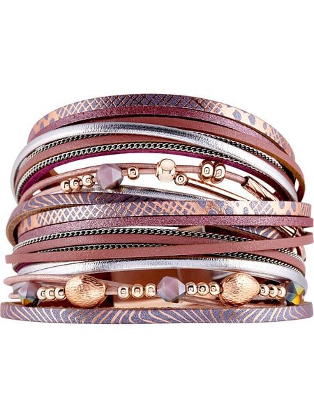 – materiał 1: skóra syntetyczna- materiał 2: rod- powłoka: w kolorze różowego złota- zapięcie: magnetyczne- rodzaj kamienia: kryształ- kolor kamienia: fioletowyWskazówka: Zdjęcie produktu w powiększeniu.