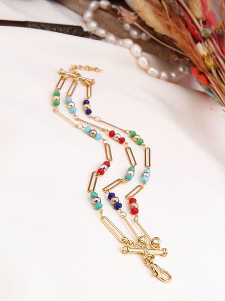 – materiał: mosiądz- powłoka: złoto- zapięcie: karabińczyk- rodzaj kamienia: kryształ- kolor kamienia: wielokolorowy- regulacja długości: tak- opakowanie: pudełko prezentoweWskazówka: Zdjęcie produktu w powiększeniu.