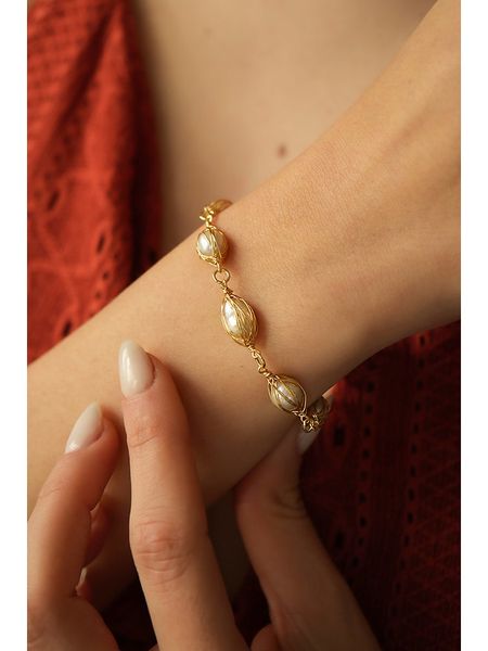– materiał 1: mosiądz- powłoka: złoto- materiał 2: perły- zapięcie: karabińczyk- regulacja długości: takWskazówka: Zdjęcie produktu w powiększeniu.