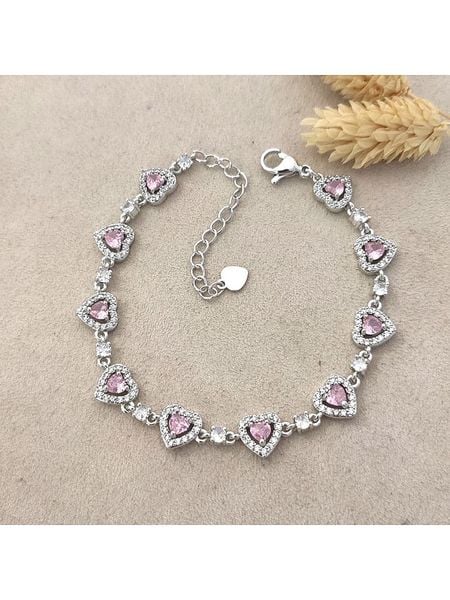 – materiał: mosiądz- powłoka: rodowanie- zapięcie: karabińczyk- rodzaj kamienia: cyrkonia- kolor kamienia: jasnoróżowy, bezbarwny- regulacja długości: takWskazówka: Zdjęcie produktu w powiększeniu.