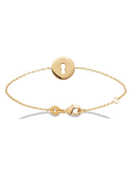 – materiał: mosiądz- powłoka: 18K złoto- typ łańcuszka: ankier- zapięcie: karabińczyk- element ozdobny: kłódka- regulacja długości: takWskazówka: Zdjęcie produktu w powiększeniu.