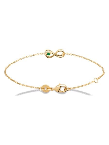 – materiał: mosiądz- powłoka: 18K złoto- typ łańcuszka: ankier- zapięcie: karabińczyk- rodzaj kamienia: cyrkonia- kolor kamienia: zielony- element ozdobny: symbol nieskończoności- regulacja długości: takWskazówka: Zdjęcie produktu w powiększeniu.