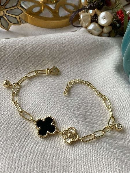 – materiał: mosiądz- powłoka: 14K złoto- typ łańcuszka: ankier- zapięcie: karabińczyk- element ozdobny: kwiat- regulacja długości: takWskazówka: Zdjęcie produktu w powiększeniu.