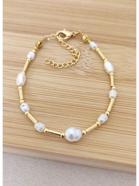 – materiał: mosiądz- powłoka: złoto- zapięcie: karabińczyk- rodzaj perły: syntetyczna perła ozdobnaWskazówka: Zdjęcie produktu w powiększeniu.