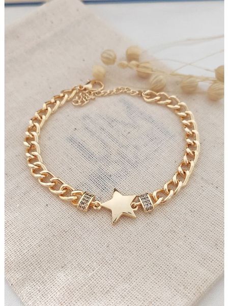 – materiał: mosiądz- powłoka: złoto- zapięcie: karabińczyk- element ozdobny: gwiazdaWskazówka: Zdjęcie produktu w powiększeniu.