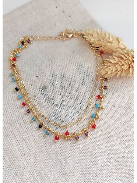 – materiał: mosiądz- powłoka: 14K złoto- typ łańcuszka: ankier- zapięcie: karabińczyk- rodzaj kamienia: kamień ozdobny- kolor kamienia: wielokolorowy- regulacja długości: takWskazówka: Zdjęcie produktu w powiększeniu.