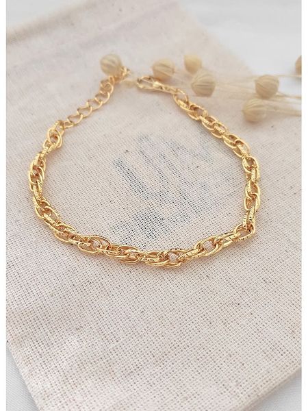 – materiał: mosiądz- powłoka: złoto- typ łańcuszka: ankier- zapięcie: karabińczykWskazówka: Zdjęcie produktu w powiększeniu.