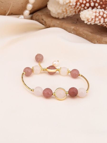 Pierres de Jade Pozłacana bransoletka z perłami i kwarcem rozmiar: onesize