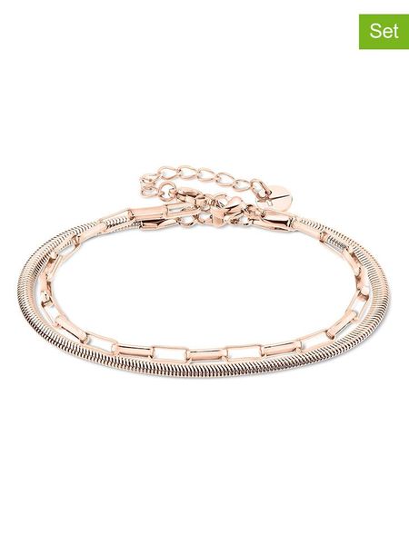 W zestawie:- 2 różne bransoletki- materiał: stal szlachetna- powłoka: IP-roségold- typ łańcuszka: żmijka, płaski ankier- zapięcie: karabińczyk- regulacja długości: takWskazówka: Zdjęcie produktu w powiększeniu.