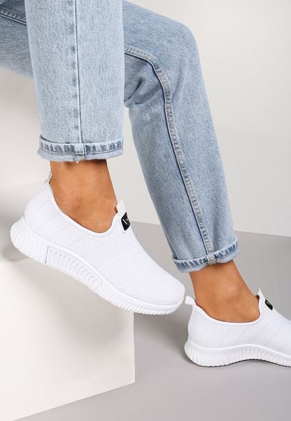 Białe Buty Sportowe z Napisem LOVE i Elastyczną Cholewką Alaissa