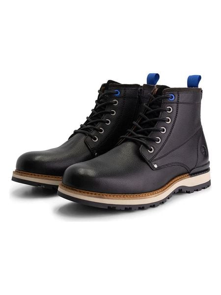 – zapięcie: sznurowanie z bocznym suwakiem- praktyczna szlufka ułatwiająca zakładanie- noski: zaokrąglone- noski i zapiętki: wzmocnione- skórzana wkładka: tak- forma obcasa: męski- podeszwa: antypoślizgowa