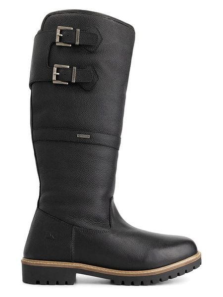– wodoszczelny materiał wierzchni- zapięcie: bez- noski: zaokrąglone- noski i zapiętki: wzmocnione- detale: ozdobna klamra- wyściółka: ogrzewająca wełna- w podeszwie oddychająca, wodoszczelna membrana- forma obcasa: męski- podeszwa: antypoślizgowa