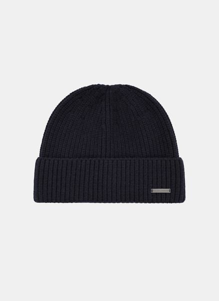Granatowa wełniana czapka męska – Pako Lorente. Czapka zimowa. Prążkowana czapka z wywinięciem. Skład: 100% wełna merino.