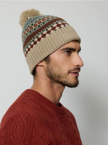 Wzorzysta czapka z pomponem – beżowy