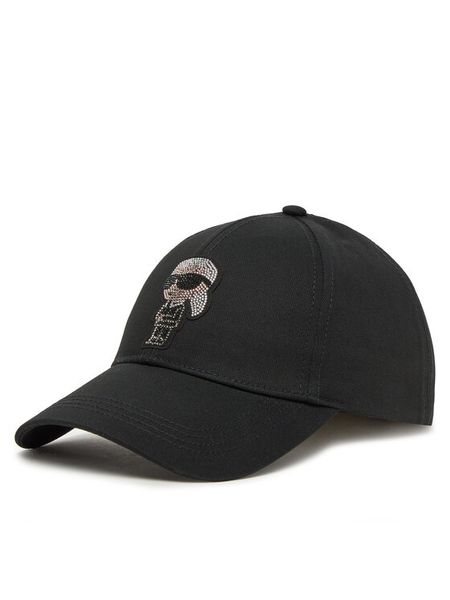 KARL LAGERFELD Czarna damska czapka z daszkiem Ikon Rhinestones