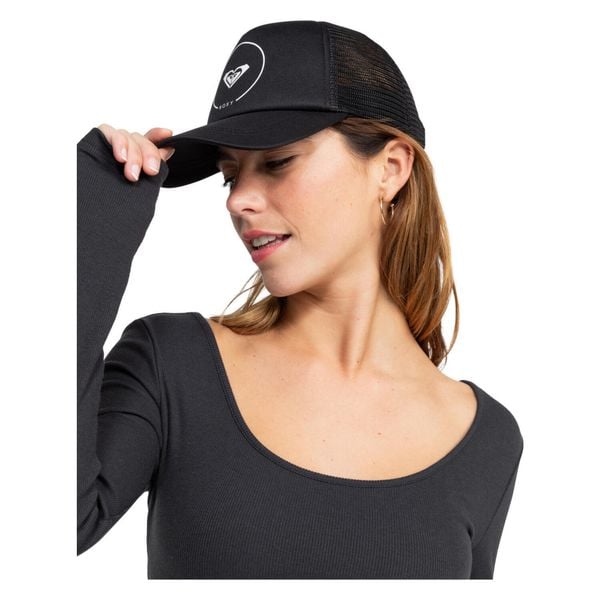 Czapka typu Trucker dla kobiet. Cechy: Materiał: tkanina poliestrowa, Zapięcie: regulowane z tyłu, Daszek: zakrzywiony, Rozmiar: 22″/56 cm Ø, Markowanie: nadruk Roxy, Inne cechy: siateczkowe plecy.. Ocena: Tags: Akcesoria Czapki z daszkiem Kolor: Czarny Rozmiar: Przeznaczenie: female Marka: ROXY