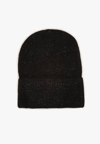 Czarna Czapka Ozdobiona Wywinięciem i Metaliczną Nicią Temirina