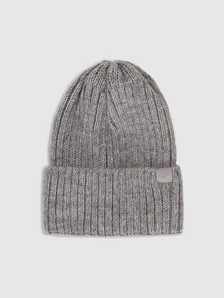 4F Czapka zimowa z dodatkiem wełny damska – szara Uniwersalny