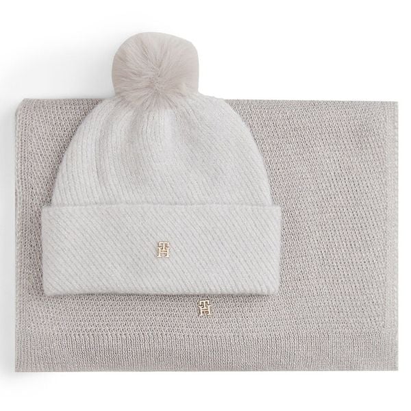 Zestaw Szalik i Czapka Tommy Hilfiger Pom Pom AW0AW17995 Beżowy