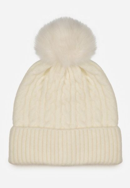 Jasnobeżowa Czapka w Warkoczowy Splot z Pomponem Vetisare