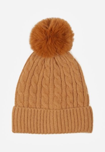 Brązowa Czapka w Warkoczowy Splot z Pomponem Vetisare