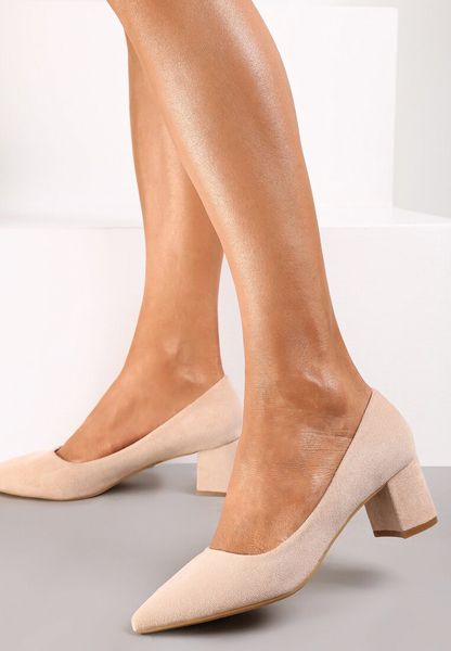Beżowe Casualowe Czółenka na Słupku Bastien