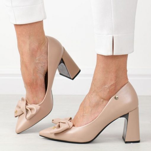 Beżowe czółenka damskie na słupku z kokardą Vinceza 62104