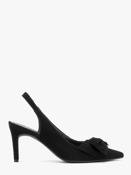 Welurowe czółenka typu slingback z kokardą