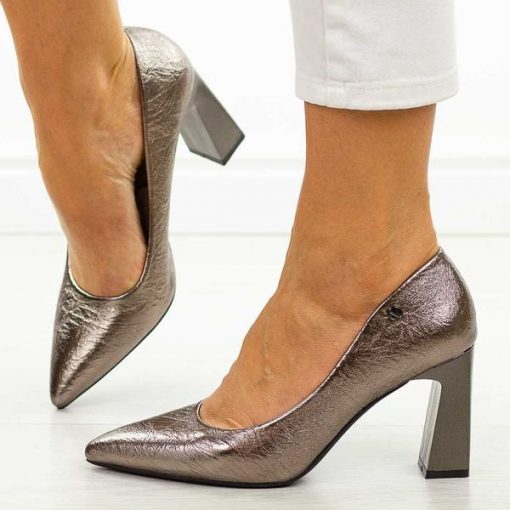 C.Srebrne PW czółenka damskie na słupku Vinceza 62252