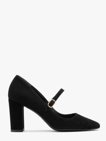 Czółenka na słupku w kolorze czarnym z paskiem z linii RYŁKO.Model wykonany ze skóry welurowej.Podszewka i wyściółka skórzana.Słupek oblekany o wysokości 8,5 cm.Wysokość obcasa uśredniona dla rozmiaru 37.Nosek okrągły.But posiada ozdobne klamerki w kolorze złotym.Dystrybutor: Brawo Sp. z o.o. ul. Dworcowa 19, 34-130 Kalwaria Zebrzydowska; [email protected] pochodzenia: POLSKA